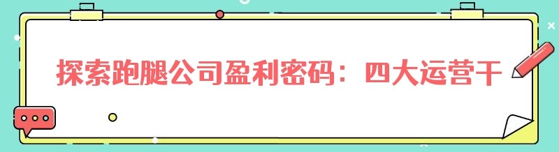 在当今社会,随着人们生活节奏的加快和消费需求的多样化,跑腿公司如雨后春笋般涌现。它们为人们提供了便捷的服务,从代买代送、文件传递到代排队、代办事等,几乎涵盖了生活的方方面面。然而,对于很多想要进入跑腿行业或者已经在运营跑腿公司的人来说,如何实现盈利却是一个关键问题。今天,我们就来深入探讨一下跑腿公司鲜为人知的4大运营干货,帮助你打开盈利之门。