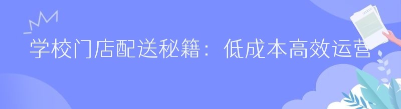 学校门店配送秘籍:低成本高效运营之道