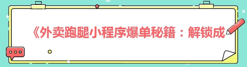 编辑 《外卖跑腿小程序爆单秘籍:解锁成功的关键要素》