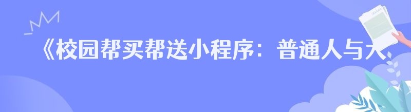 《校园帮买帮送小程序:普通人与大学生的创业新机遇》