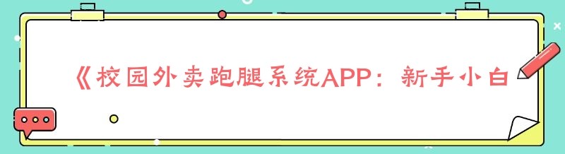 《校园外卖跑腿系统APP:新手小白的创业指南》