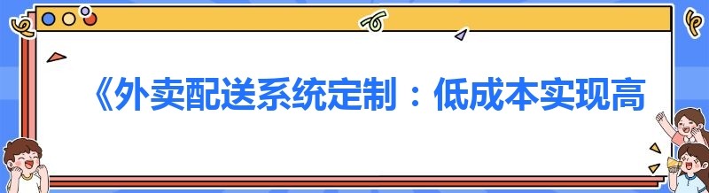 《外卖配送系统定制:低成本实现高效运营的秘籍》
