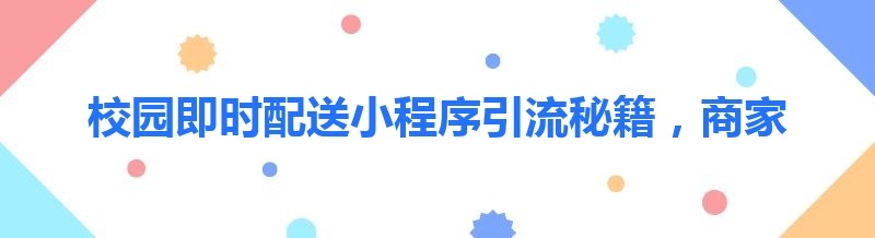 校园即时配送小程序引流秘籍,商家必知!