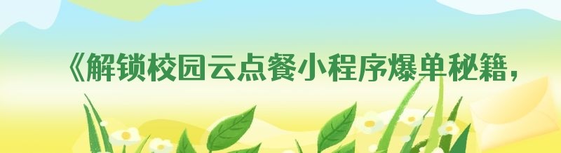 《解锁校园云点餐小程序爆单秘籍,开启创业财富之路》