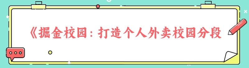 《掘金校园:打造个人外卖校园分段集中配送的财富密码》