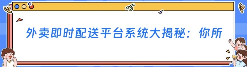 外卖即时配送平台系统大揭秘:你所不知道的那些事儿