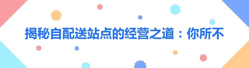 揭秘自配送站点的经营之道:你所不知道的那些事儿
