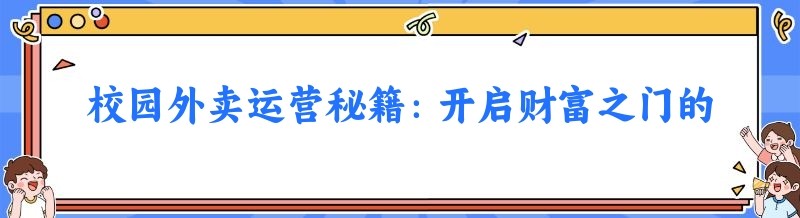 校园外卖运营秘籍:开启财富之门的金钥匙