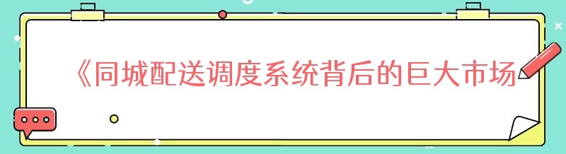 《同城配送调度系统背后的巨大市场,创业者不容错过!》