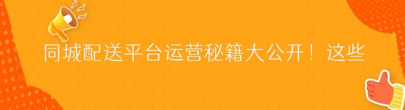同城配送平台运营秘籍大公开!这些技巧至关重要