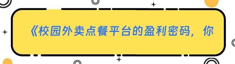 《校园外卖点餐平台的盈利密码,你真的了解吗?》