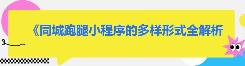 《同城跑腿小程序的多样形式全解析》