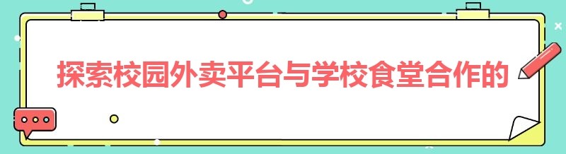 探索校园外卖平台与学校食堂合作的成功之道