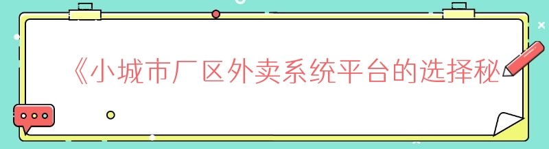 《小城市厂区外卖系统平台的选择秘籍与实用技巧》