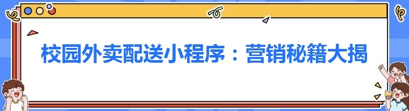 校园外卖配送小程序:营销秘籍大揭秘,助你轻松启航!