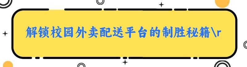 在大学校园这个充满活力与需求的市场中,校园外卖配送平台如雨后春笋般涌现。如何在激烈的竞争中脱颖而出,成为众多学生的首选呢?这里有一些压箱底的技巧,助你打造一个成功的校园外卖配送平台。