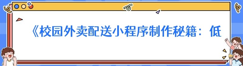 《校园外卖配送小程序制作秘籍:低成本也能打造高效平台》