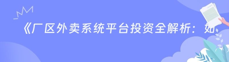 在当今社会,随着工业化进程的加速,厂区的规模不断扩大,厂区内的员工数量也日益增多。对于这些员工来说,便捷的餐饮服务成为了他们日常生活中的重要需求。因此,投资建设一个厂区外卖系统平台,不仅能够满足员工的需求,还能带来可观的经济效益。那么,一个厂区外卖系统平台需要多少投资呢?又如何实现一个月回本呢?本文将为您详细解析。