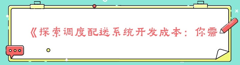 编辑 《探索调度配送系统开发成本:你需要知道的那些事儿》