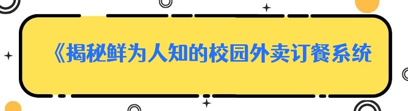 《揭秘鲜为人知的校园外卖订餐系统:开启便捷校园生活新篇章》