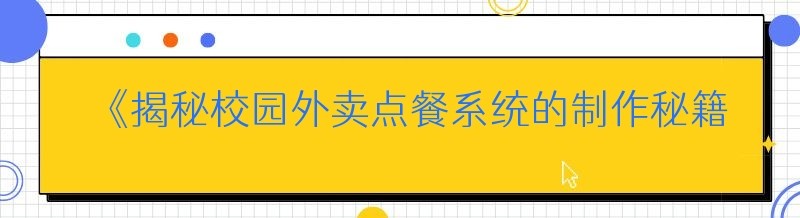《揭秘校园外卖点餐系统的制作秘籍,你还在等什么?》