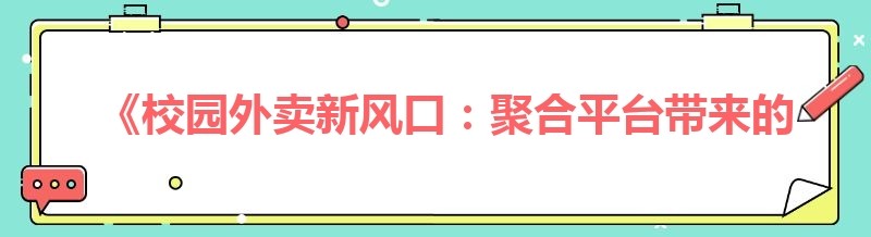 《校园外卖新风口:聚合平台带来的赚钱机遇》