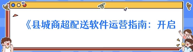 编辑 《县城商超配送软件运营指南:开启个人创业新征程》