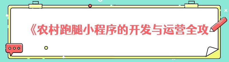 编辑 《农村跑腿小程序的开发与运营全攻略》