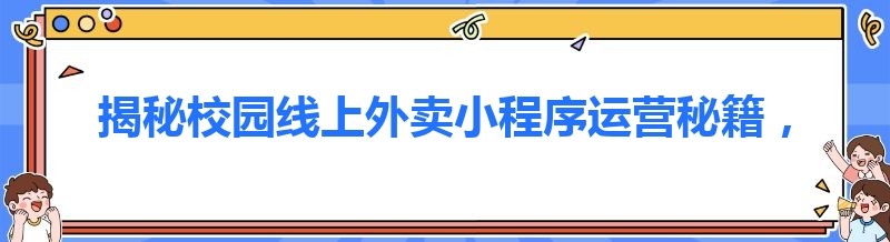 揭秘校园线上外卖小程序运营秘籍,你不容错过!