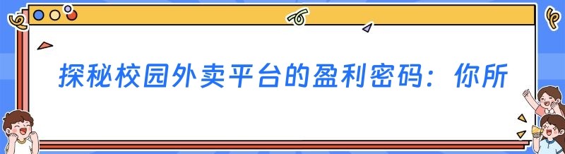 探秘校园外卖平台的盈利密码:你所不知道的收入真相