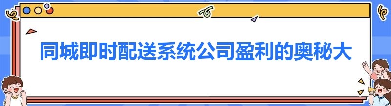 在如今这个快节奏的时代,同城即时配送已经成为了人们生活中不可或缺的一部分。无论是外卖、生鲜、药品还是其他各类商品,都需要通过同城即时配送系统快速送达消费者手中。那么,同城即时配送系统公司是如何盈利的呢?今天,我们就来一文讲透这个真相。