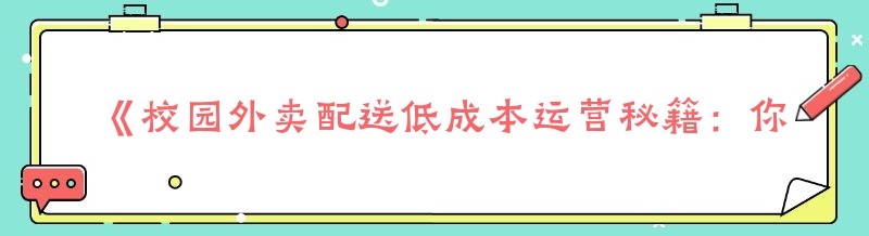《校园外卖配送低成本运营秘籍:你真的走对第一步了吗?》