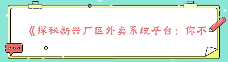 《探秘新兴厂区外卖系统平台:你不可错过的便捷新体验》
