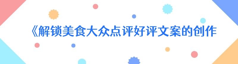 编辑 《解锁美食大众点评好评文案的创作密码》
