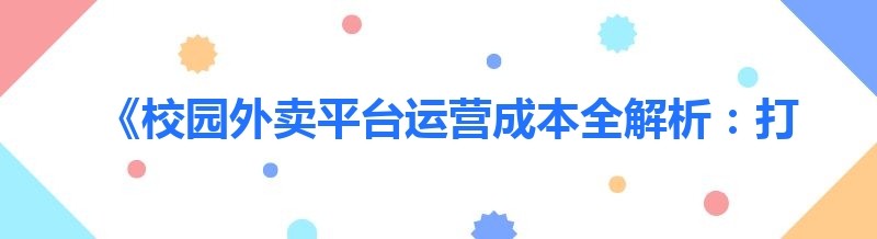 《校园外卖平台运营成本全解析:打造下一个美团校园版需要多少资金?》