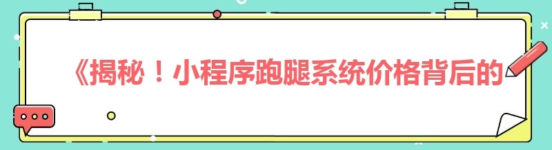 《揭秘!小程序跑腿系统价格背后的真相与正确做法》
