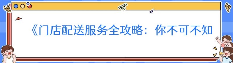在当今竞争激烈的商业环境中,门店配送服务已成为众多商家提升客户满意度、增强竞争力的重要手段。无论是餐饮、零售还是其他行业,高效、优质的配送服务都能为企业带来更多的商机和口碑。那么,门店配送服务究竟有哪些需要了解的知识呢?下面就为大家进行全面总结。