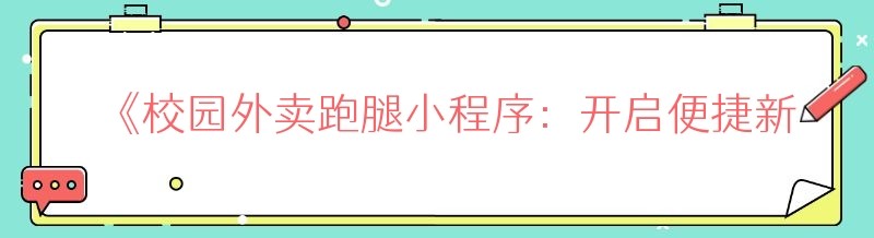编辑 《校园外卖跑腿小程序:开启便捷新生活,你还在等什么?》