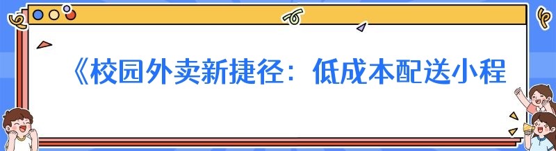 《校园外卖新捷径:低成本配送小程序的魅力》
