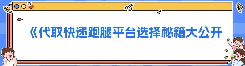《代取快递跑腿平台选择秘籍大公开》