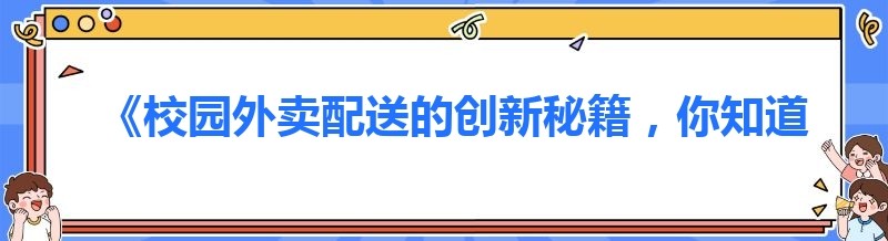 编辑 《校园外卖配送的创新秘籍,你知道几个?》