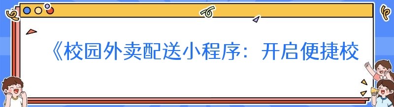 《校园外卖配送小程序:开启便捷校园生活新时代》