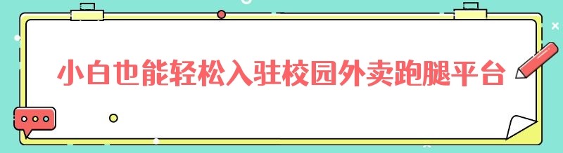 小白也能轻松入驻校园外卖跑腿平台,开启创业新征程