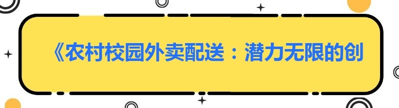 《农村校园外卖配送:潜力无限的创业新机遇》
