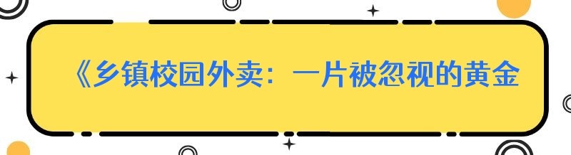 在广袤的乡镇地区,校园外卖正逐渐成为一个潜力巨大的商业领域,然而,很多人却对其视而不见,直到错过才追悔莫及。