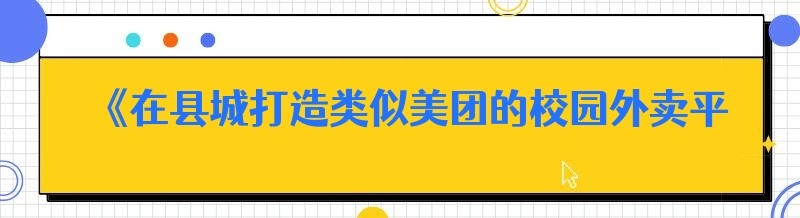 《在县城打造类似美团的校园外卖平台,其实很简单!》