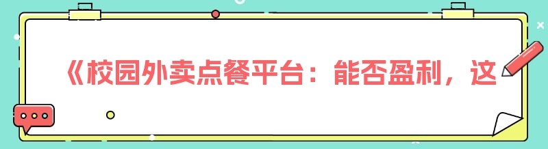 《校园外卖点餐平台:能否盈利,这些因素是关键!》