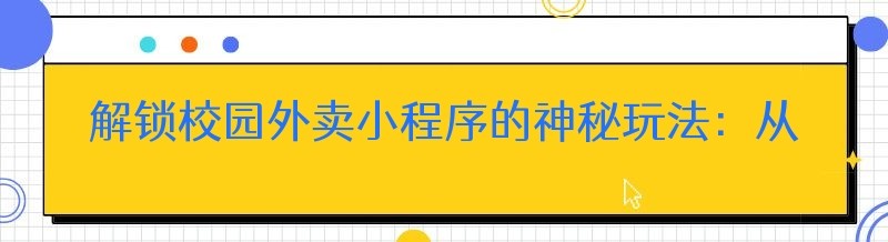 - 《校园云点餐小程序运营秘籍大公开,助你轻松上手!》