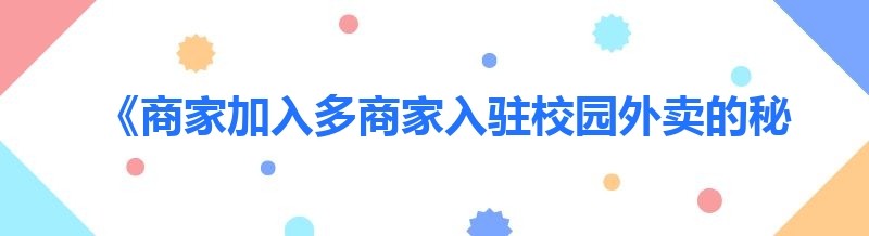 《商家加入多商家入驻校园外卖的秘籍,你知道吗?》