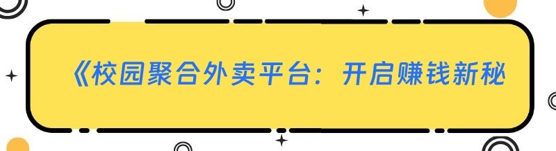 《校园聚合外卖平台:开启赚钱新秘诀》